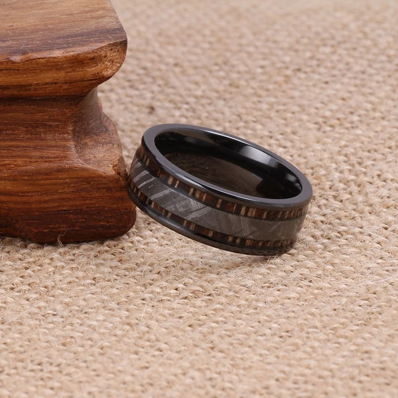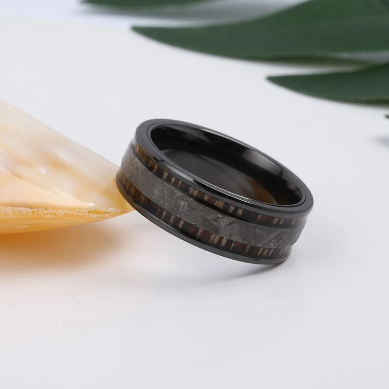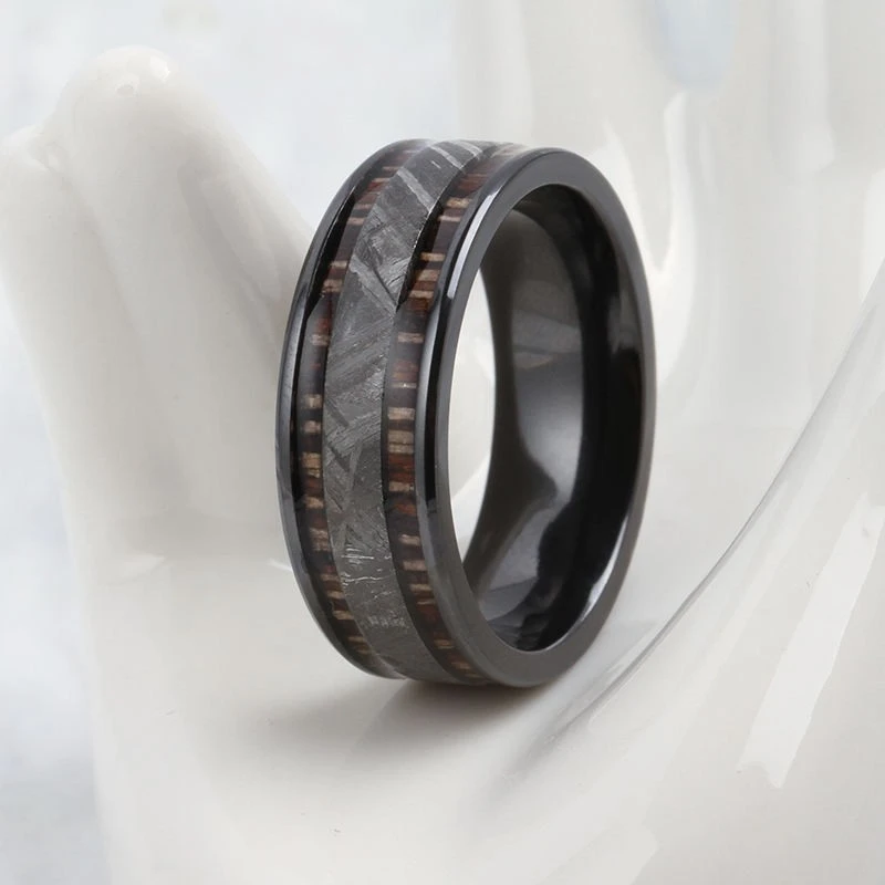 Ringe: Mit Meteoriten eingelegte Ringe aus Wolfram/Titan-Stahl (einschließlich farbblockierter, gemischter Stile mit Holzmaserung/Geweihmuster);