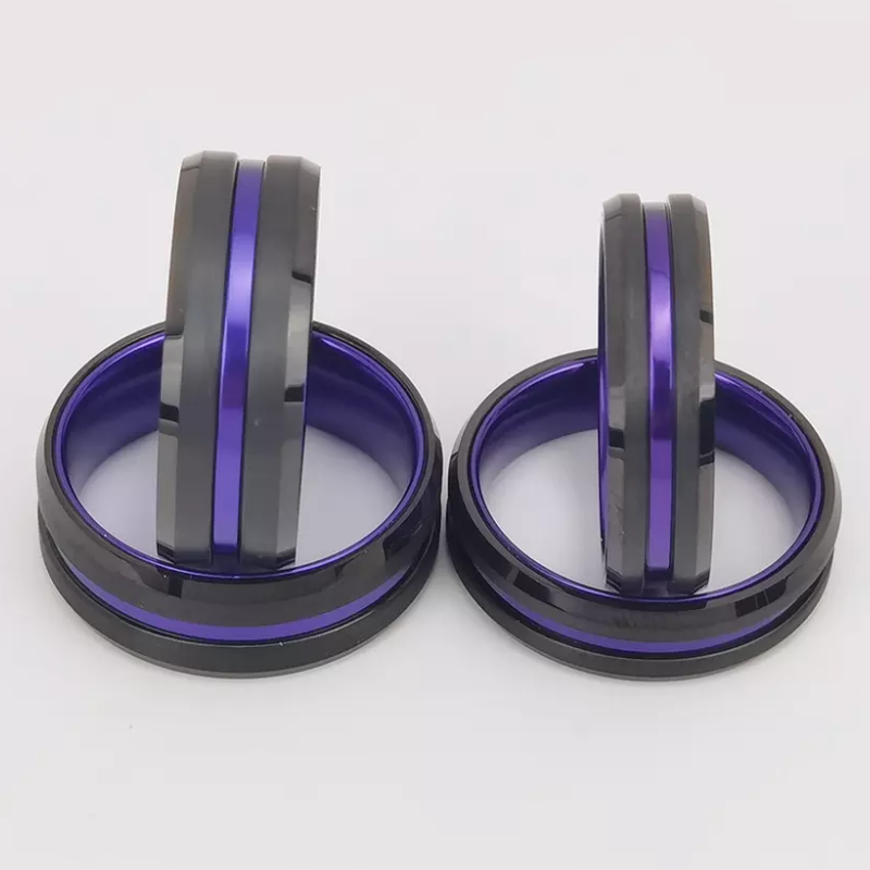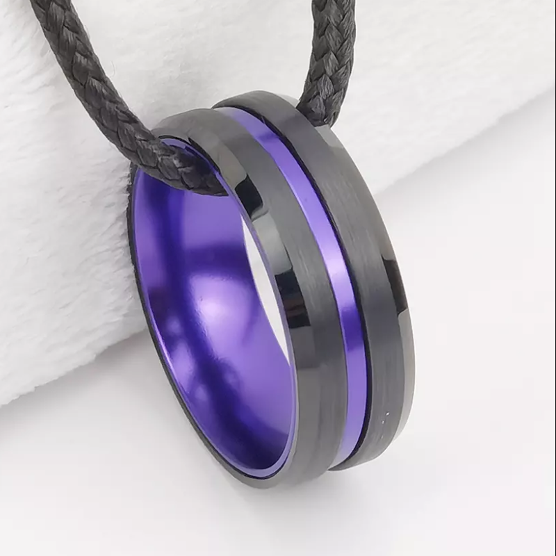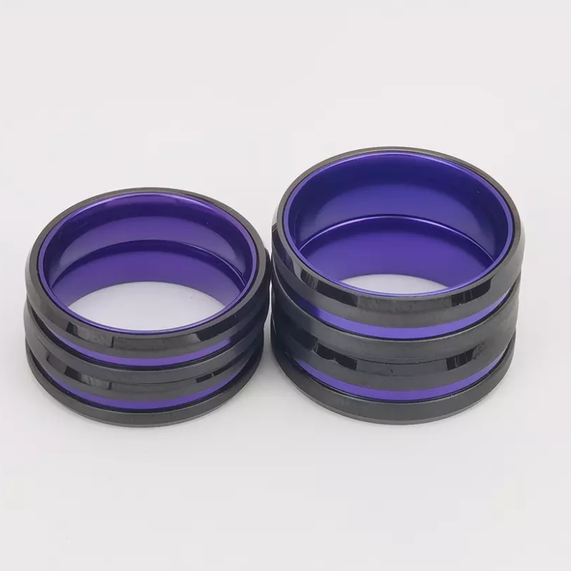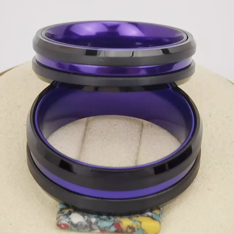 Tungsten Ring in Stock Popular 8mm High polished and Brushed Flat and Beveled Edges Black Tungsten Carbide And Purple Aluminum Ring China Manufacturer