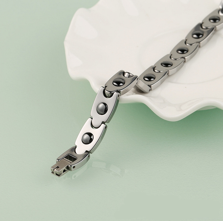 Tungsten bracelet can be matched with different elements. We usually put high power Magnet Stone, Germanium, Energy Stone, Anion, Far infrared, Germanium Powder in each link of bracelets, that makes our tungsten bracelets good for health as well as beauty. To Know More Please Click: Tungsten Carbide Bracelet with Energy Stone